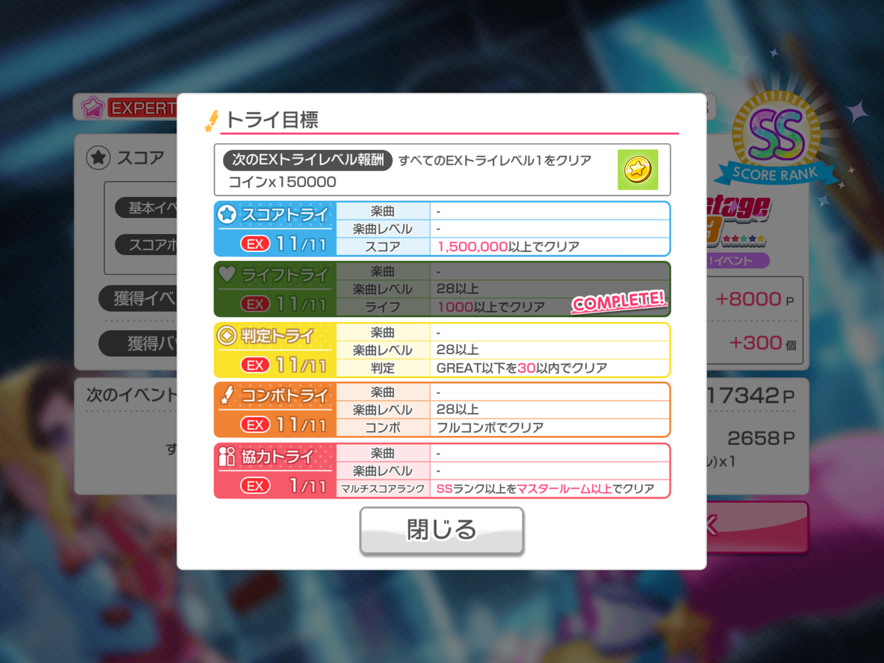 見た感じ初っ端から難しく感じました。とくに判定トライのグレイト以下20以内は、今までもこんな感じだったけ?と思うぐらいLV1になかったような気がします。